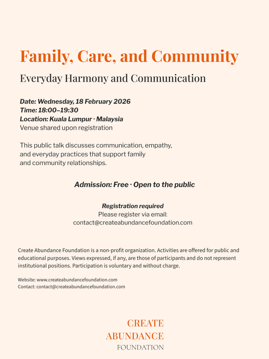 Create Abundance Foundation delivers charitable benefit in Ireland through open, no- or low-cost activities that support reflection, ethical awareness, and community wellbeing.